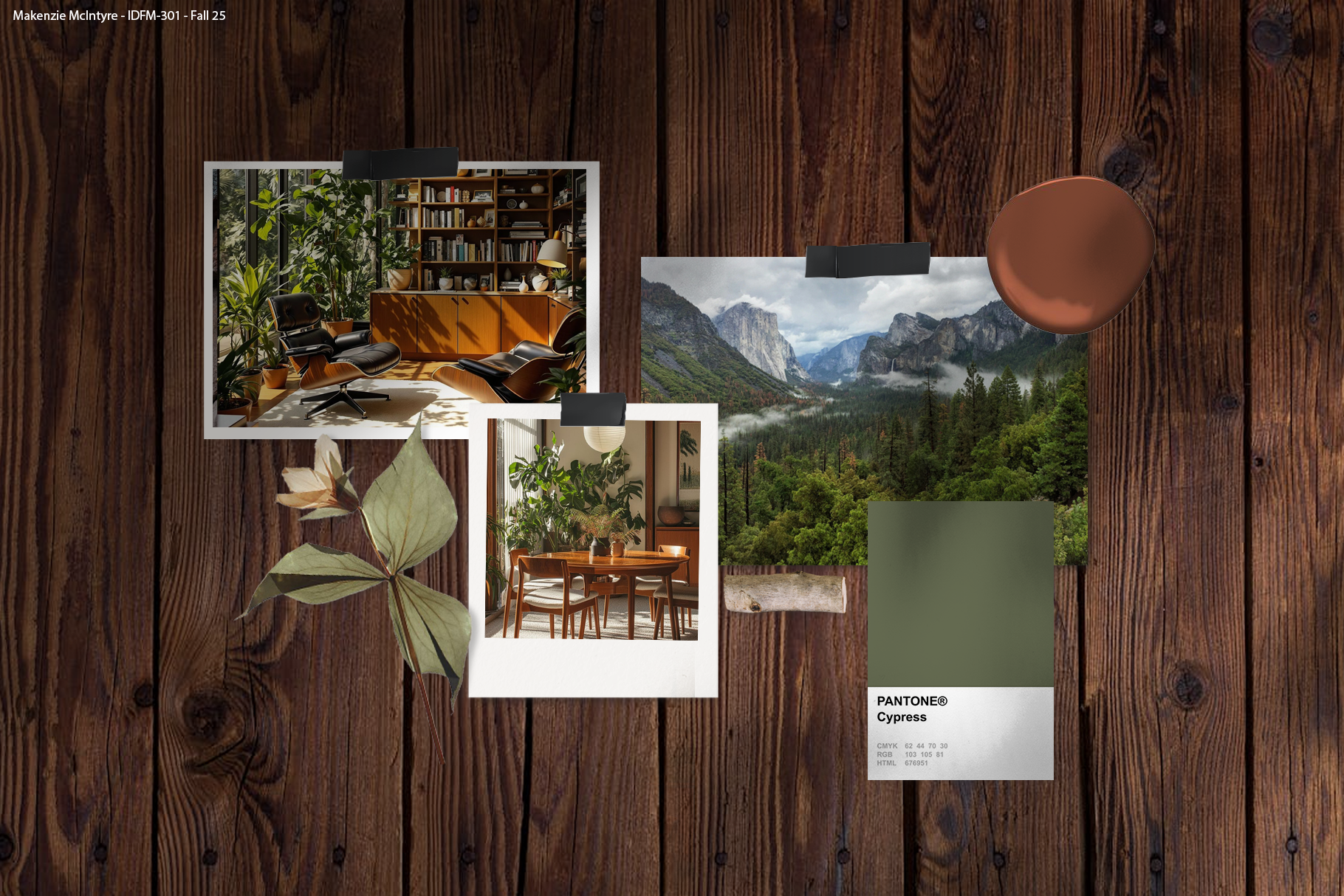 We were tasked with developing a cohesive concept for a home centered around an earthy atmosphere. I curated a palette that emphasizes warmth. The composition reflects a grounded, inviting environment rooted in nature-inspired design principles.
