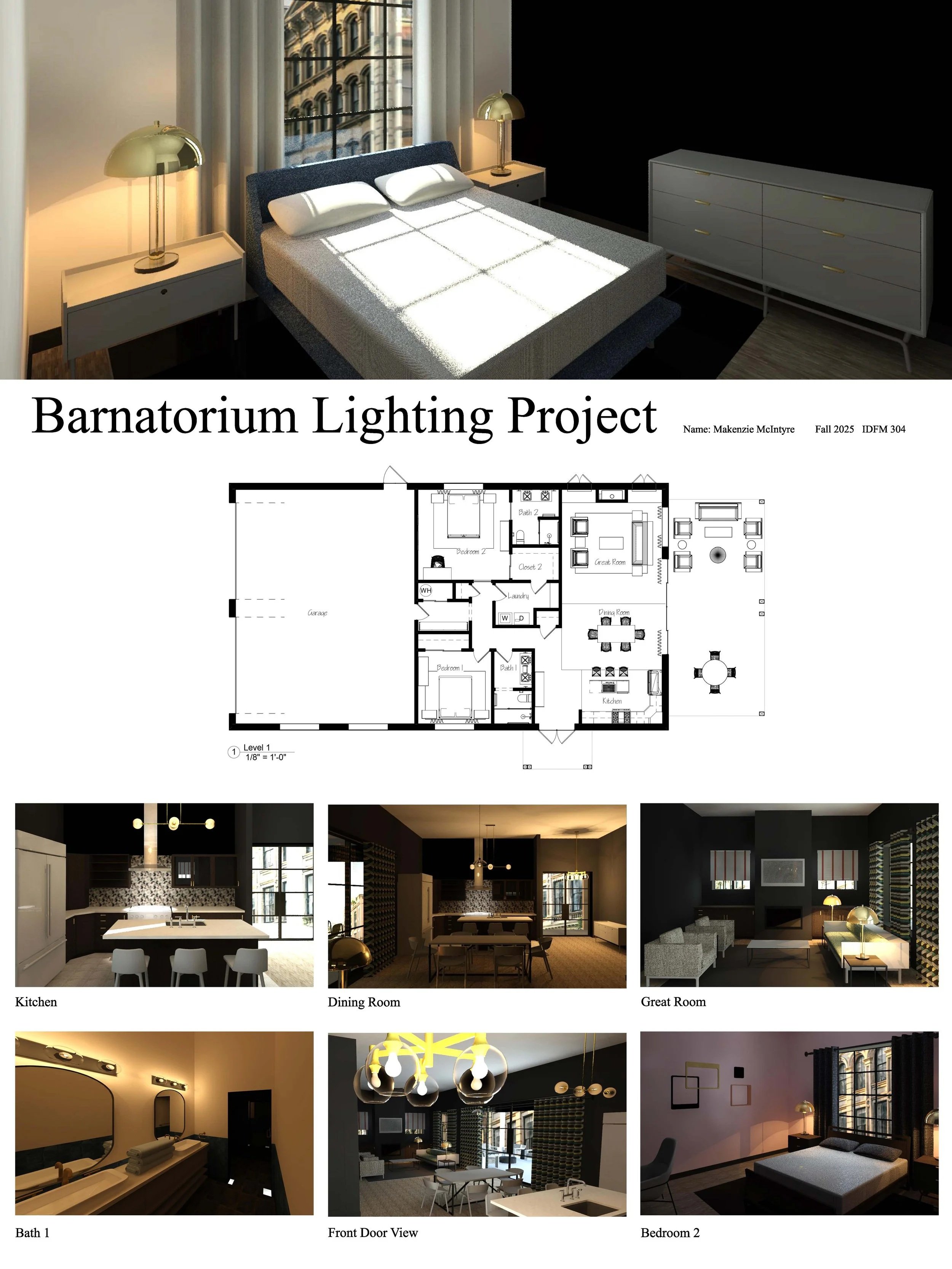 For this presentation board, we were tasked with selecting and presenting lighting fixtures that best complemented the given residential spaces. The goal was to thoughtfully pair each fixture with the function and aesthetic of its designated room.